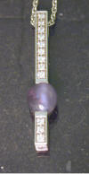 Catseye alexandrite Beautiful and rare, this 1.61 carat catseye alexandrite from Russia has a stunning color shift from bluish-green in daylight to raspberry red in incandescent. Set in 14kt. white gold and highlighted by .14 carat of brilliant white diamonds, the pendant hangs from a white gold cable-link chain. - $2400.00
